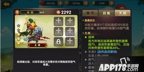 锤子三国中关羽属于前排输出型武将,作为一代武圣,在三国历史中大放异彩,相信有很多的玩家喜爱这个英雄吧,那么游戏中关羽到底怎么样,武将值不值培养呢?我们都知道锤子三国中评价一个武将好不好,一看技能,而看天赋,下面小编就来为大家分析一下关羽的英雄天赋如何吧。
