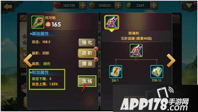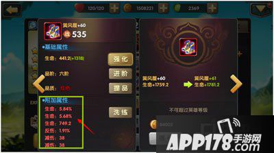 绿色装备洗炼出来的终极属性也很低,而且最多只能洗炼两条属性,这个时候洗炼获得的效果并不明显。但《大锤三国》这里又做了一个人性化的设定,那就是如果此时将装备的品阶达到最高级(红色),并且附加属性洗练到上限,在后期装备等级提升时,洗炼的附加属性是会跟着提升的,也就是不需要再去洗了。