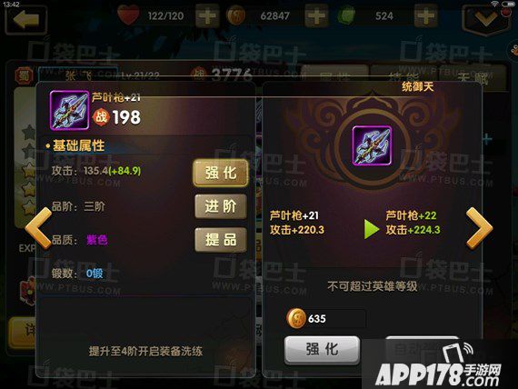 1、装备:装备相对普通的卡牌游戏来说更加复杂一些,装备可以强化、进阶、提品以及洗练。其中强化需要花费金钱,但提升的等级不能超过英雄自身等级;进阶需要花费一定装备图纸和材料;提品需要花费装备宝石来提升品阶。以上三种都是能直接提升装备的能力,是英雄变得更强。而洗练则相对复杂一些,小编这里推荐去看专区有关装备洗练的攻略。【传送门】