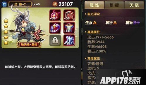 锤子三国游戏中玩家初始得到的武将英雄大多是一星或二星,三星算不错的啦,玩家想要给自己的武将升星就必须收集该武将碎片作为材料,凑齐了才可以升星,升星之后武将的属性和技能都会得到很大提升,当玩家把武将升到五星就圆满了,今天小编要为大家介绍的就是五星庞德的武将属性和技能如何,一起来看看吧。