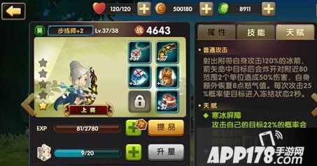 基础天赋:寒冰屏障,攻击自己的目标22%的概率会被冻结3秒,觉醒攻击时部队中的法师可以获得觉醒攻击。