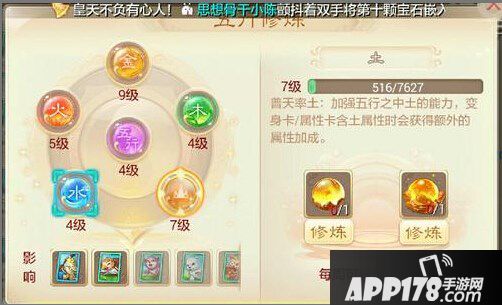 (可以看到在卡片下方有显示五行修炼的加成效果)