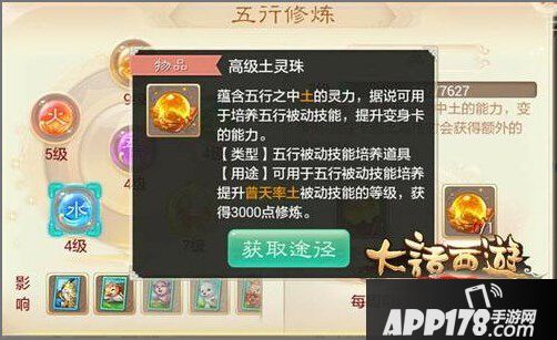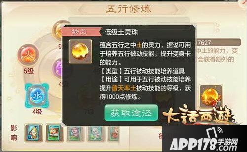 消耗对应五行培养材料,可以提升相应的五行等级。当五种五行都达到一定级别。就可以消耗少量师门贡献进行五行等级升级操作。