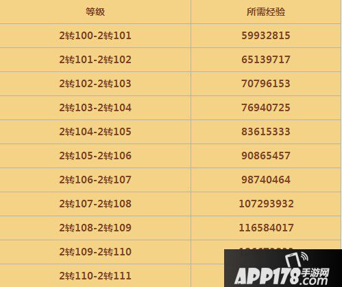 以下是从kfz帅GG那里要来的详尽的表单,得此榜单,便可让你了解从转生后从2转100级到2转111级每一级所需要的经验,向转生真空期say no,就是这么简单。
