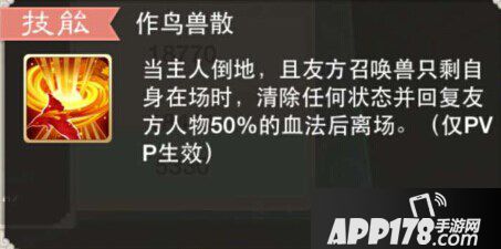 第二只画中仙身上的作鸟兽散,明显不适用于此类敏高血少的单位,而是要放在白泽、龙女等血量很高的单位上为佳,当全队倒地且场上只剩余这一只召唤兽时,做鸟才会被触发,画中仙这种血少的存在,很明显不是一个好的选择。