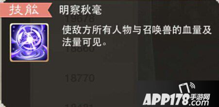 而明察秋毫,是当召唤兽在场时才会生效,一般队伍中由仙族携带为最佳,并且需要一只血量足够多的宝宝,例如白泽、五叶、垂云叟等,因为仙族的法术只是单一的火力输出,不像其他种族需要各种技能的配合运用,所以自始至终保证每回合的出手才是最为重要的,在这种情况下,仙族的召唤兽能够起到的作用就没有其他种族那么明显,所以队伍中的明察可以全部放在大仙身上,一只或多只都可。