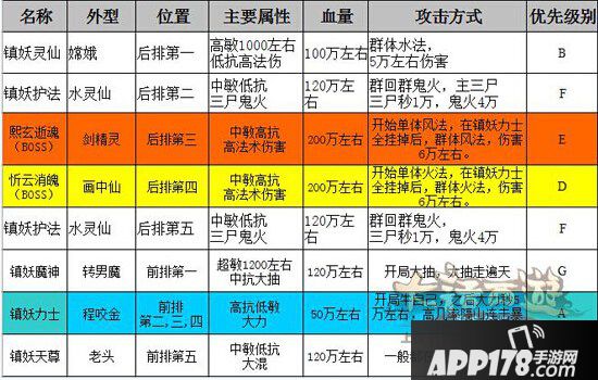 怪物阵容:标配10个怪,BOSS忻云消魄(火法画中仙)、BOSS熙玄逝魂(风法剑)、三个镇妖力土(大力)、镇妖魔神(加速男魔)、镇妖天尊(放混老头)、镇妖灵仙(群水嫦娥)、镇妖护法(回血水灵)。