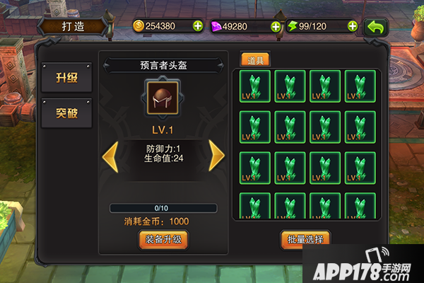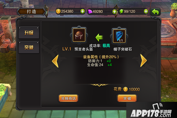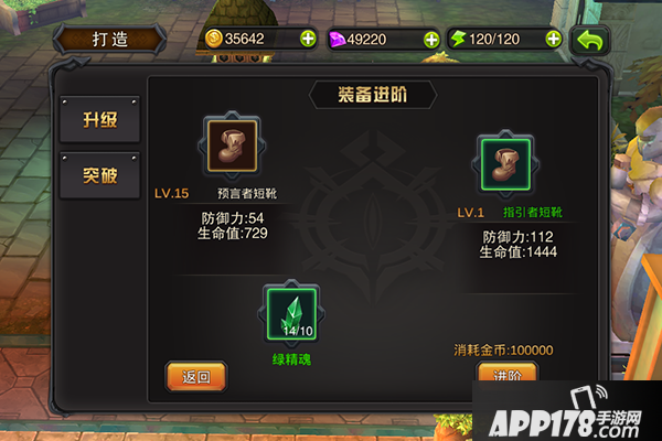 装备强化需要消耗经升级石等宝石,装备升级时,需要升级石,装备突破需要突破石。升级和突破都能提升装备的各种属性。