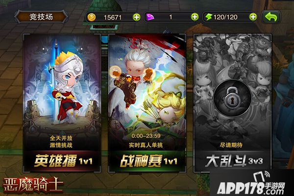 《恶魔骑士》竞技场多彩多样,既有1V1单人PVP挑战,又有3V3多人在线大乱斗。而1V1单人PVP挑战又可分为:实时在线挑战和离线挑战两种。其中离线挑战便是“英雄擂”。