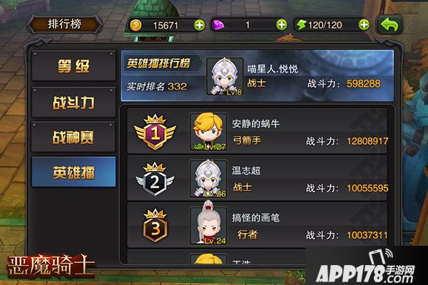 英雄擂前一百名的玩家还有机会进去全服排行榜,接受全服玩家的瞻仰!