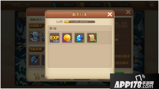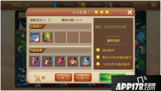 相信有不少玩家在获得了三星评价后,对反复刷副本的升级方式会产生厌倦,这时候使用扫荡功能就可以省略战斗过程,直接消耗活力值来获得副本奖励!