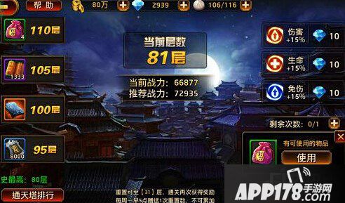 只要各位主公等级达到36,即可前往通天塔开启挑战!神塔通天,层数未知,但初次入塔时,默认层数为1层。不过各位主公不必担心重复无聊的战斗,通天塔内蕴含神秘力量,将通过战斗时长估算战力,自动为闯塔的勇士跳过层数,给各位主公带来坐直升梯甚至直升机一般的越级快感!不仅如此,连每5层出现一次的精英层也可以跳过,而且丝毫不损应得的奖励哦!当然,每十层出现一次的BOSS层是无法跳过的,方便各位主公花样虐BOSS大显神威,斩获丰厚战利品!
