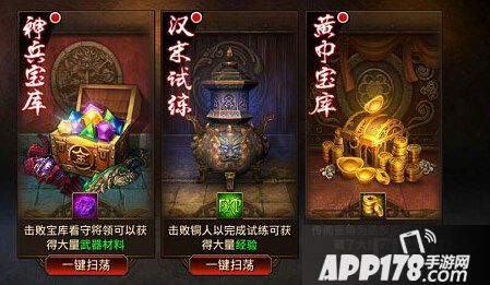 南征北战中每次挑战只需要消耗2点体力,每日每种副本可挑战3次,到达40级还能开启一键扫荡功能,绝对适合所有没钱没体力没时间的“三无”主公!