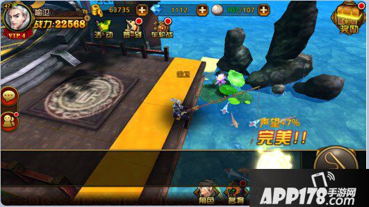 4,钓鱼评分:有失败、漂亮、完美等阶之分,钓鱼的完美程度越高,获得的奖励加成就越高,声望越高,圣兽系统提升就越高。