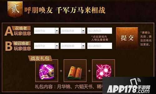 《刀锋无双》贺岁公测岂能少得了壕礼?微博上转发抽奖赢小米4、微信上全民拼图获取大礼包、官方贴吧上踩楼送好礼……缤纷活动全线开启,想拿壕礼的主公们记得密切关注哦!不仅如此,七天以上未登录的主公在活动期间回归即可直接领取热血回归礼包!而在贺岁公测期间,线上的主公们参与《刀锋无双》呼朋唤友活动,召唤从前的好兄弟回归,并达到指定条件,两人都会有大量奖励!月华锦、六韬天书和稀有道具全囊括!快找回你最想念的那个TA吧!