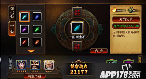 抢夺:抢夺他人宝物,需要釜底抽薪,先击杀掉对方的副将,然后通过击杀其他玩家获取强化石或者宝石道具,合成自己所需物品,化为己用