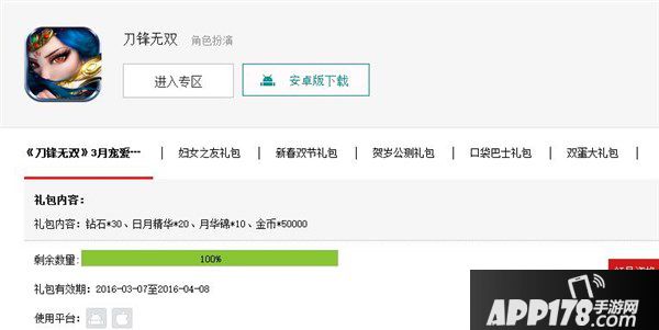 以上就是小编带来的刀锋无双APP178手游独家礼包,更多有关刀锋无双的精彩内容,欢迎关注APP178手游游戏专区!