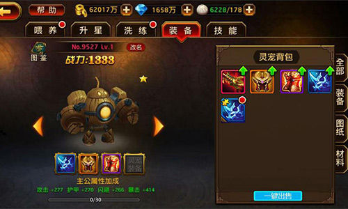 现实中,爱护宠物的主人都喜欢给自己的宠物购置专属衣物来打扮它们。而现在,在游戏中的玩家们也可以体验到这一乐趣了,快给一直陪伴自己灵宠套上新增的装备吧,还能直接提升灵宠战力。直接进入灵宠界面,在技能页签之前将会新增一个“装备”页签。选中它,右侧将会展现灵宠背包,装备按战力高低、品质高低、IP依次排列。灵宠激活后均可穿戴装备,同ID装备只能穿戴一件,装备槽数量由灵宠种类而定。装备槽有对应的解锁星级,需要灵宠达到该星级才能解锁。在槽位不足的情况下,装备除了卸下,还可以出售、分解、合成。每件装备都有至少一条原始属性,该属性随着星级的提升而提升。除了原始属性,还有穿戴在特定的灵宠身上才有效果的隐藏属性。想深入探究这些装备的神奇效果吗?那就快到游戏里给自己的灵宠穿戴吧!