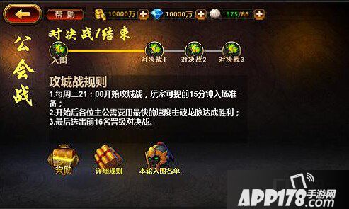 所有战斗结束后,本次公会战的排名也将立即公布!同时,系统将通过邮件向参加的公会发放奖励!公会战第一名的奖励可比第二名丰富许多,大量金币和钻石绝对是各位主公迎娶白富美登上人生巅峰的必备之物!