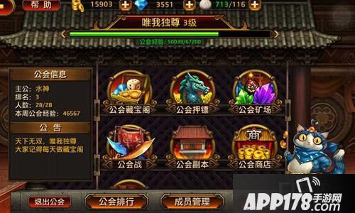 18级开始,各位主公就可以寻找志同道合的小伙伴一起建立公会共战天下了!成为公会一员后,每天可以通过公会押运获取大量珍贵材料,也可以通过抢夺其他公会的镖车来获得对方的材料。当然,被其他公会抢夺也是可能的,正所谓有人的地方就有江湖,有江湖的地方就有纷争,起了纷争怎么办,不要怂就是干!