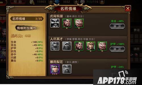 因此,到26级,名将情缘系统也就顺势开启了!“桃园结义”刘关张、“江东二乔”大小乔、“同生共死”颜丑文良、“五虎上将”关张赵马黄……很多耳熟能详的三国名将都有自己的名将情缘!上阵羁绊,下阵情缘,各位主公不妨收集尽量多的副将来丰富自己的名将情缘吧!