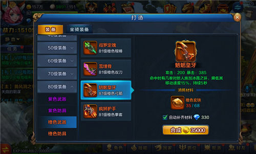 首先需要的是一把品质较好的武器,除了反复刷副本赌RP以外,还能亲力亲为,自己打造出来!在国战、刺探、运镖过程中获得的橙色玄铁可以用来打造极品的橙色装备,品质和属性都比紫色、蓝色的更加逆天!下一步自然是好好培养你的装备,包括强化、觉醒和进阶,完成这几个步骤就能够获得质的飞跃!