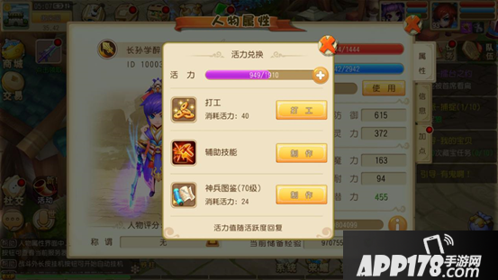 消耗一定的活力值,可以打工获取铜币,以及制作神兵图鉴。