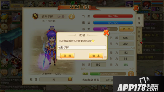 (1)改名:可点击人物名字右边白色毛笔似的图标,花费一定元宝更改人物角色名。