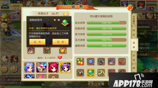 宠物培养介绍:培养界面可以给宠物使用宠物资质丹来提升宠物各项资质。
