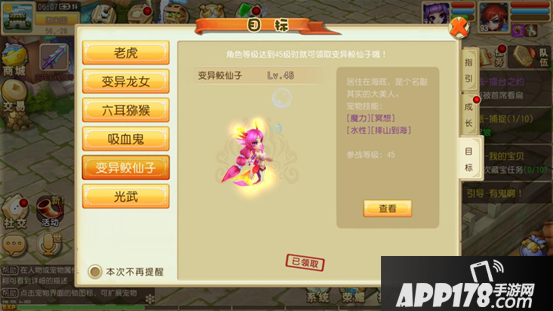 福利二:点击指引界面,在目标一栏,玩家完成相应的目标任务,可获得系统免费赠送的强力宠物、伙伴、以及必定带有特技或者特效的发光酷炫武器“光武”。