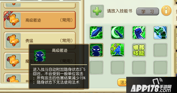 高级匿迹降低15%的攻击,而且隐攻宠必备的高连还会降低20%的伤害,所以高级背刺(提高10%物理伤害结果)不能少。