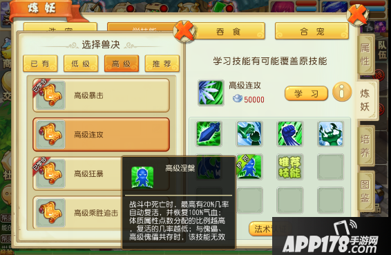 最重要的一个技能“高级涅槃”,高涅槃的价值大家都懂, 一个pk一个宝宝连续神了好几次就好像有多个玩家进行对战一样,喜好PK的玩家一定要有的技能