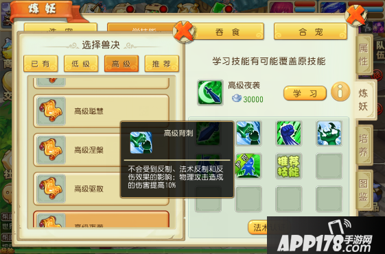 同时“高级暴击”也不能忘记,而且『大唐仙妖劫』里面新增了一个攻宠的技能“背刺”:增加物理伤害结果。