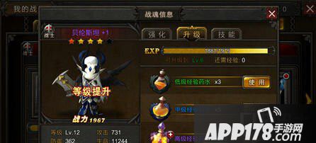 《超级地城之光》独创的“战魂”玩法,玩家通关关卡以及日常刷怪任务等与主角一起上阵的战魂在战斗过程中都会获得相应的战魂经验值,战魂等级也会随之提升。当然,光靠这些经验战魂往往跟不上“主人”的等级,这时,战魂列表中使用“经验药水”喂养战魂,则成了提升战魂等级的最佳手段!