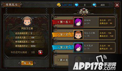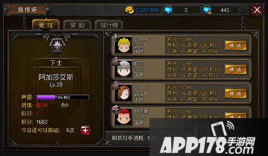 竞技场以积分为基准进行排名,战胜不同的对手可获得不同积分,战败则会扣除积分
