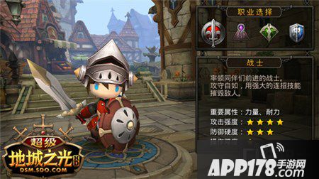 战士是《超级地城之光》中最适合初学者的选择,战士有“三好”,俘获万千少女心: 第一:血厚防高生存强!第二:攻守兼备易操作!第三:小投入大回报!略弱的群攻击力下掩盖着其惊人的单体攻击力!看着图中装备着坚固的盔甲、剑与盾牌的战士,是否已经引起你战斗的欲望?