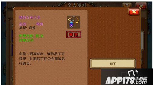 这件装备时通过公会商店才能购买到的神器,需要公会商店达到4级和公会贡献达到100以后才能购买,且只能购买7天和30天时限,分别需要300点卷和990点卷,不过时限到期后可以在到公会商城购买。