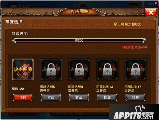 1、每天开放一种图腾,守卫共有5个难度,达到一定等级可解锁。
