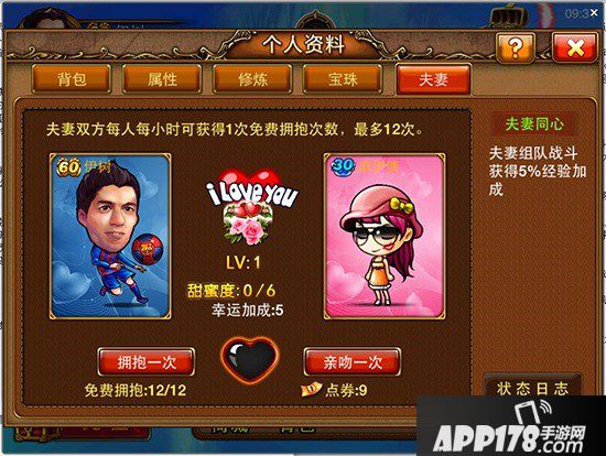 黄金求婚戒指:求婚成功后夫妻双方获得黄金婚戒,属性:攻击20,敏捷10,防御10,幸运10;