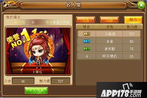 名人堂将新增【魅力排行】,排行前十可获得排行奖励,每周日0点通过邮件发放,同时重置本周魅力值。