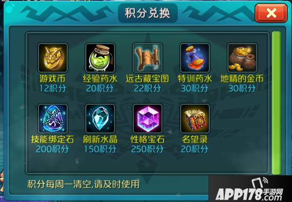 第3章刷到3星差不多1400名望了,还差4本名望录。当然我们可以耗费200点体力刷200次旧关卡,用几个祝福道具可以更快。也可以选择通关第四章冒险关卡,但是4生物上阵打第四章还是有点小难的。这时候我们不要忽略了积分兑换名望录: