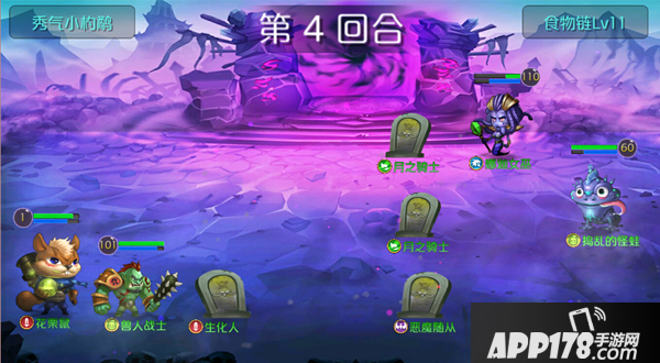 本宝宝在这里小卡了1局,不幸战败。居然不能躺着过,激发了我的斗志。原来是地方人多欺少,这个阵容的攻克点显然是3号【恶魔随从】了,恶魔随从可以起死回生,不先干掉打【月之骑士】也是白搭,且看地方并无一列群攻技能的生物,于是果断调整【布阵】将我方小3傻调到与【恶魔随从】一排的位置,这样可以集中火力,一人摸一下,干死【恶魔随从】。接下来就分分钟恁死其他几个啦!