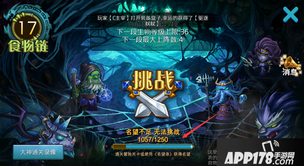 好的,言归正传,攒够名望值可以打17层了,食物链17十分简单,一个乌龟带两个小脆,就不截图了,相信大家都能轻松过关。