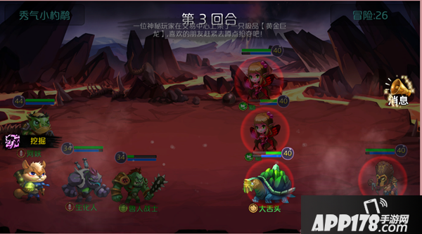 此时我刚好打到冒险36,居然过不了,一看这架势,哦~~我得换阵容了,我的3傻对着死乌龟在打,这个千年老肉龟龟壳可不是一般的厚,需要换阵容~