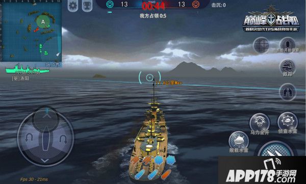 而在自动模式中,我们还需要注意的是,当我们移动视角,调整武器角度的时候,由于视角变换,那么船和舵盘在界面中的的朝向也会发生变化,而我们的手指却没有移动,所以如果我们手指不和视角舵盘的转动一起移动,就会出现在移动视角的时候,船也跟着转动的情况。