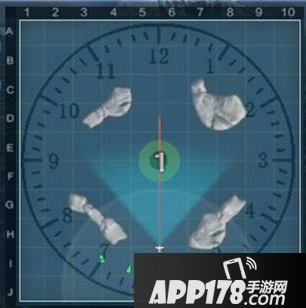 游戏通话,说准作战方位也很重要,除了说“前后左右”,有经验的玩家善用“表盘定位”的方法来表述方向。把整个地图看成一个表盘,每个舰船的大体方位就能用1点—12点准确表述出来(如图三),若以地图1号占领点为表盘圆心,左侧的巡洋舰就在7点钟方向,航母在6点方向,飞机正飞往12点方向。