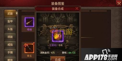【装备合成】游戏中一些极品装备,玩友们是可以通过合成来获得的,但是需要装备合成材料的。合成装备需要七彩石,不同的装备需要的七彩石的数量也不一样。玩家可以点击七彩石在更多中找到合成,即可制作自己想要的橙装。