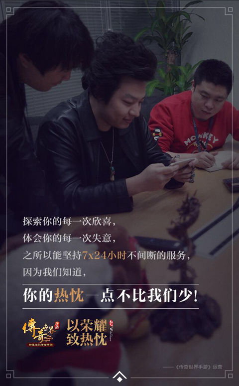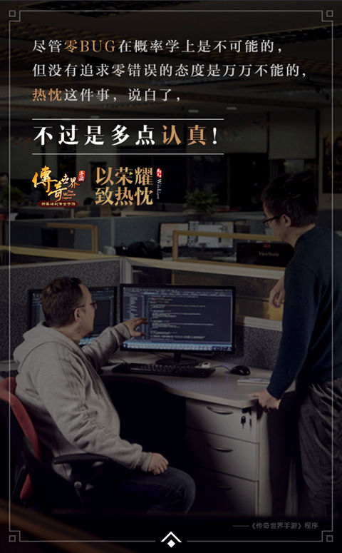 以零错误的态度对待游戏内的BUG,极度认真地去发现每一个小细节;上千张原画稿,只为呈现一个个唯美的游戏场景,与一个个立体化的霸气形象;无论玩家热衷于沙城血战,还是沉醉于打宝PK,我们都将认真探索你的欣喜、失意,并在游戏中提供7x24小时的不间断服务,只为不负玩家对游戏的热忱。