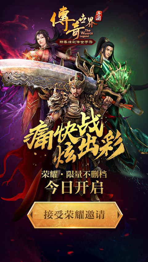 你可曾记得与兄弟并肩,不战死不后退一起血战沙城;可曾记得与兄弟杀入魔宫,手刃铁血魔王;可曾记得与兄弟共同对战从天而降的战争机器——阿修罗;战士冲锋在前,道士施毒唤骨,法师强力输出!这些热血的日子是追寻荣耀的见证,13年后《传奇世界手游》炫彩来袭,诚邀各位勇士跨上灵兽,披上仙翼,争夺领地,再战中州!领地争夺战即将打响,官网抢码已经开启,荣耀不删档等你来战!