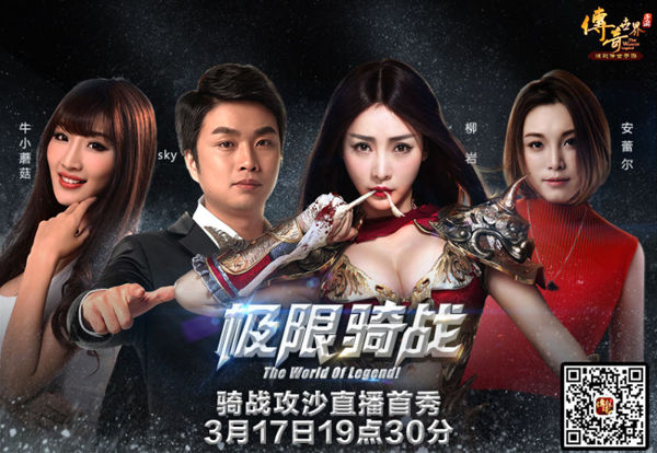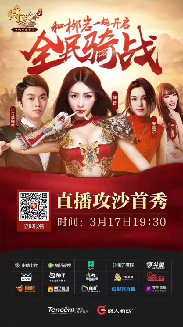 《传奇世界手游》3月17日,柳岩领衔骑战直播攻沙的号角已经吹响!柳岩战神、人皇SKY、快手女神小蘑菇、实力游戏唱将安哥全部蓄势待发!15大平台联合推出这一场骑战攻沙直播首秀!!娱乐圈、电竞圈、游戏圈、快手圈四圈首次碰撞!(文末有彩蛋!)